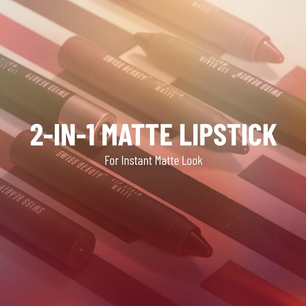 Swiss Beauty Lip Stain Matte Lipstick is a highly pigmented lip crayon that delivers long-lasting, intense colour to your lips. The 2-in-1 lipstick can be used as a lip liner and lip filler. This long-lasting, highly pigmented lipstick is designed to give your lips a subtle, bold, and beautiful matte finish. The Lip Stain Matte Lipstick is formulated to provide a rich, vibrant colour that lasts for hours. The lightweight, non-drying formula ensures comfortable wear that doesn't dry out your lips. The matte finish of the lipstick creates a modern and sophisticated look that's perfect for any occasion, from a night out on the town to a day at the office. The precise applicator tip allows for easy and precise application, ensuring that you get the perfect pout every time. Available in a variety of stunning shades, the Lip Stain Matte Lipstick is suitable for all skin tones and types. Whether you prefer bold and vibrant shades or subtle and neutral hues, there's a shade for everyone in this collection. It's the perfect choice for anyone looking to add a pop of colour and style to their makeup look!