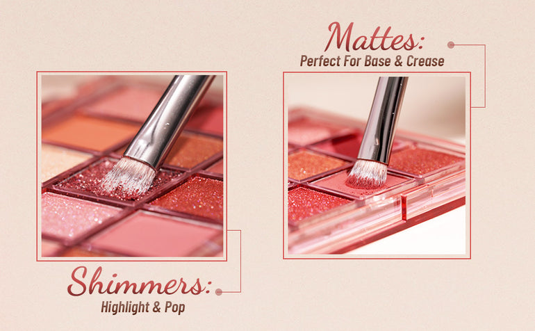 Mattes + Shimmers for Every Mood: From soft, subtle hues to bold, shimmering tones — this palette brings together versatile shades that suit every look and moment