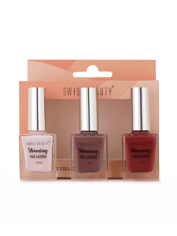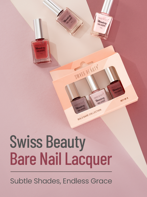 Make your nails the centre of attention and experience the difference in true nail perfection today with the Swiss Beauty Bare Set of 3 Nail Lacquers. This set features a range of 3 nude hues, making it suitable for all occasions, whether you're heading to a formal event or a casual day out. These shades effortlessly complement any outfit, enhancing your overall style. Each application delivers a subtle colour that captivates and inspires.