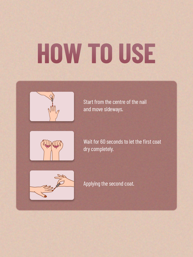 These lacquers offer a smooth, glossy gel-like finish that adds a touch of sophistication to your nails, ensuring they catch every eye. Say goodbye to chipped nails and long drying times thanks to our non-chip formulation, and enjoy a long-lasting, smooth finish that endures daily activities. Our nail paints dry quickly, allowing you to get back to your busy day without smudging or smearing. Plus, our lacquers boast rich colour payoff, allowing you to express your unique style.