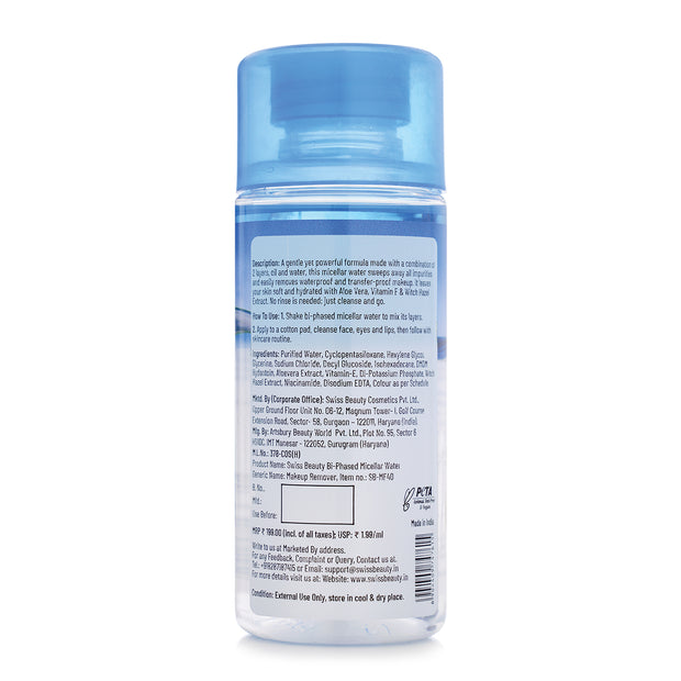 Experience the gentle yet powerful cleansing with Swiss Beauty Bi-Phased Micellar Water. This innovative formula effortlessly removes dirt, impurities, and even the most stubborn waterproof makeup, leaving your skin clean, refreshed, and hydrated. The bi-phased formula combines the effectiveness of oil and water for a thorough yet gentle cleanse.