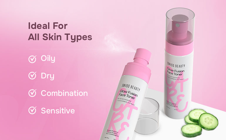 Every spritz is pure skin bliss! The Swiss Beauty Care Glow Fusion Face Toner is your all-day refresher, hydration hero, and glow-boosting sidekick, packaged in one magical mist. Packed with the goodness of 3% Niacinamide and calming Cucumber Extract, evens out skin tone, balances oil, and dials down irritation, leaving you fresh-faced and radiant. Rose Water lends a gentle, soothing touch, while Lactic Acid smooths and softens skin texture like a dream. Spritz it on after your morning cleanse for a boost of hydration and goodness, or use it throughout the day whenever your skin needs a little pick-me-up. Lightweight, non-comedogenic, and free from parabens, sulphates, and animal-tested ingredients, every spritz is a deep-dive into glow-getting goodness.