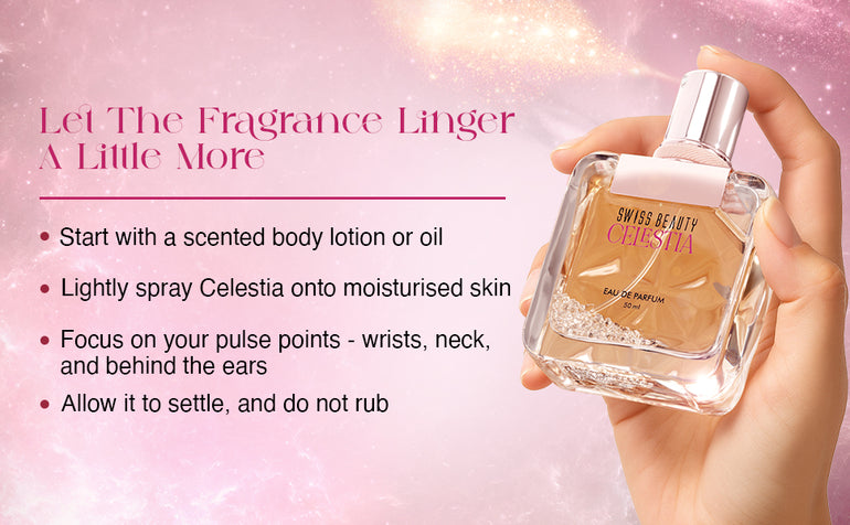 Long-Lasting Eau De Parfum: With a 15–20% fragrance concentration, Celestia lingers beautifully for long hours, keeping you lively all day