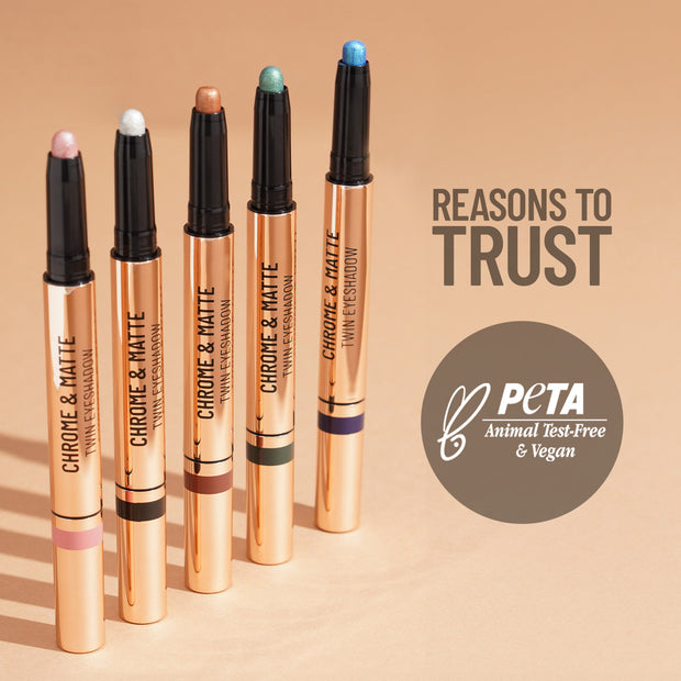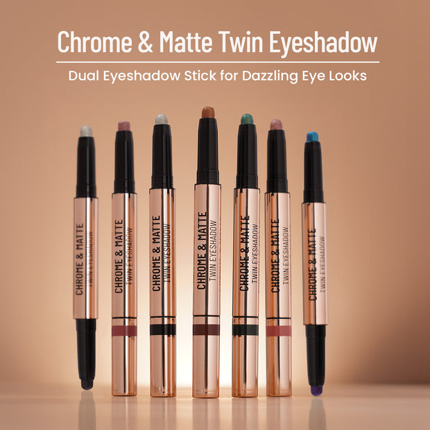 - Twin Eyeshadow Stick: The dual-ended eyeshadow stick features a chrome finish on one side and a matte finish on the other for subtle to mesmerising eye looks.