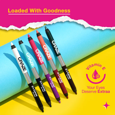 - Loaded with Vitamin E: The CRAZE It’s Extraa Duo Kajal is loaded with the goodness of Vitamin E to soothe your eyes and keep them safe.