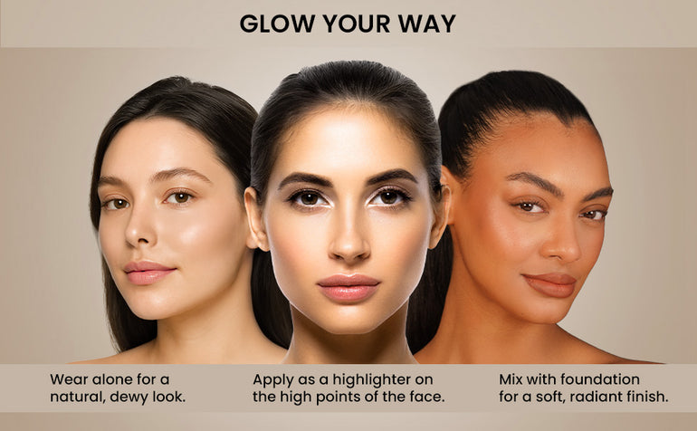 3-in-1 Multi-Use Formula: Versatile enough to use in multiple ways—wear it alone for a soft glow, mix with foundation for an all-over radiance, or apply on high points of the face as a highlighter