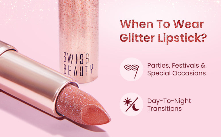 For perfect application, gently glide Swiss Beauty More Than Glitter Lipstick across your lips, starting from the centre and moving outward for even coverage and a creamy finish with glitters.
