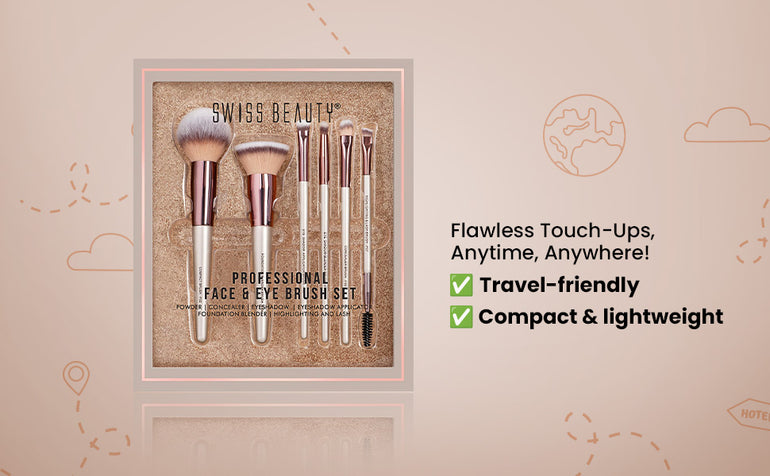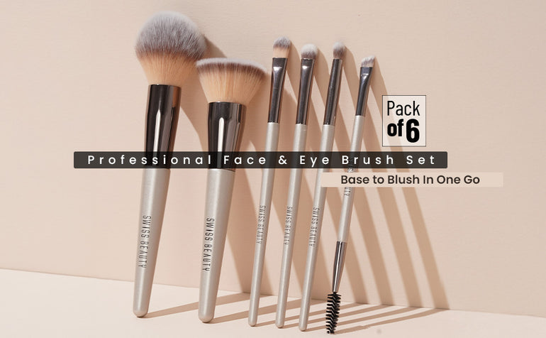 Swiss Beauty Professional Face & Eye Brush Set is the ultimate brush set for achieving flawless makeup looks every time. This set includes 6 brushes that cater to all your face and eye makeup application needs, from applying foundation to blending eyeshadows and highlighting your brows. The set includes-Concealer Brush, Powder Brush, Brow Brush, Eyeshadow Applicator Brush, Eyeshadow Brush and Foundation Blender Brush.