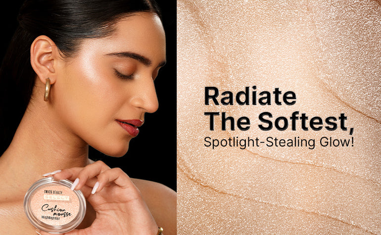 Soft-Focused Glow -The Swiss Beauty Select Cushion Mousse Highlighter is formulated with micro pearl particles that melt into the skin to exude a soft, halo-like glow - no glitter or chunky particles.
