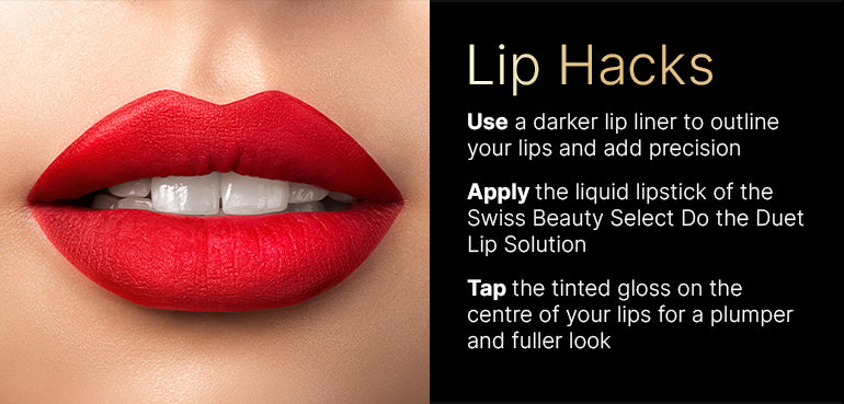 - Signature Lip Looks - Apply the matte liquid lipstick from the centre of your lips to the outer corners and top it off with the tinted gloss for a cohesive and fuller lip look.