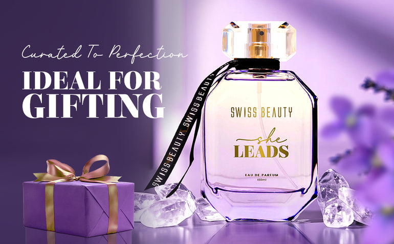 Fresh, Citrusy Notes With a Floral Twist: She Leads by Swiss Beauty opens with fresh, lemony, and balsamic notes of Elemi that flow into a floral landscape brimming with Violet Flowers, and finally settles into the warm, musky trails of Cedarwood.
