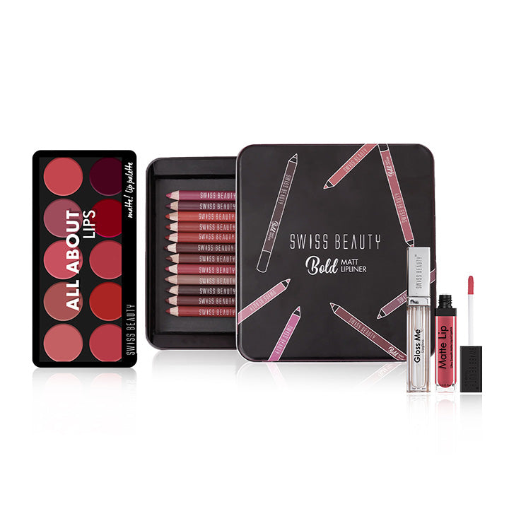 The Swiss Beauty Kiss Me Quick Combo is your ultimate lip essentials set, designed to create instant bold and stunning lips. Whether opting for a matte look or a glossy finish, this combo has everything you need for flawless lips that last all day.