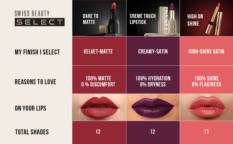 - Creamy & Decadent Formula: The Swiss Beauty Select Crème Touch Lipsticks have a creamy, rich, and decadent formula that glides effortlessly and feels airy-light on the lips.