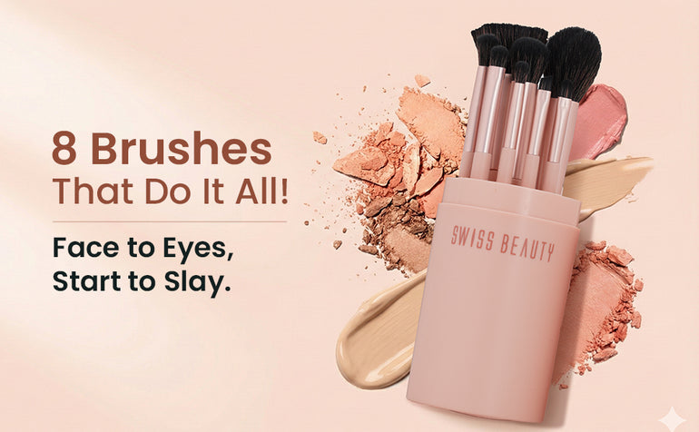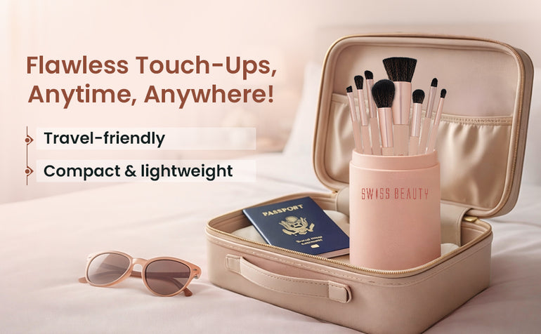 8-in-1 complete set: The Swiss Beauty Take Me Anywhere Brush Set includes 8 essential brushes for a full-face look, from foundation to eyes and lips.